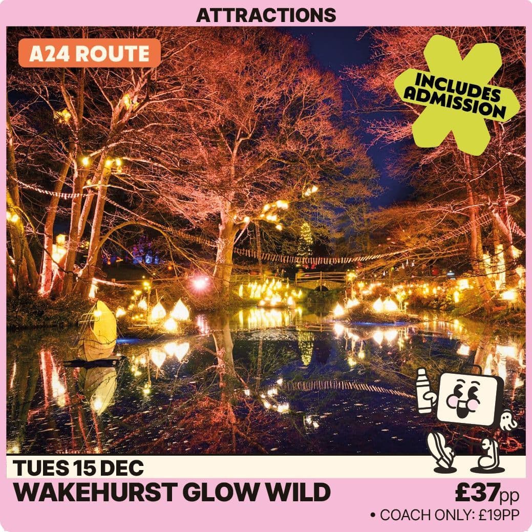 Tuesday 15th December — Return visit to Wakehurst’s magical Glow Wild! Explore woodland wonderland illuminated by thousands of lanterns and bespoke installations. Coach only option £19 available.